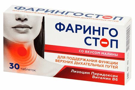 Фарингостоп 30 шт таблетки для рассасывания со вкусом малины доставка