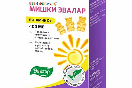 Бэби формула мишки Эвалар витамин D3 30 шт пастилки жевательные доставка