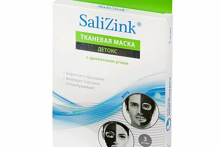 Маска для лица SaliZink 3 шт детокс с древесным углем доставка