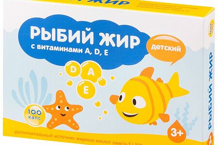 Рыбий жир с витаминами А, Д, Е капсулы 100 шт детский доставка