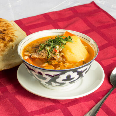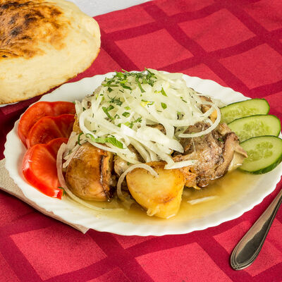 Баранина, жир курдючный, картофель, чернослив, горох (нут), соль