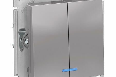 Выключатель двухклавишный с подсветкой Systeme Electric AtlasDesign 10АХ, алюминий ATN000353