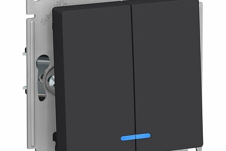Выключатель двухклавишный с подсветкой Schneider Atlasdesign 10А, карбон ATN001053