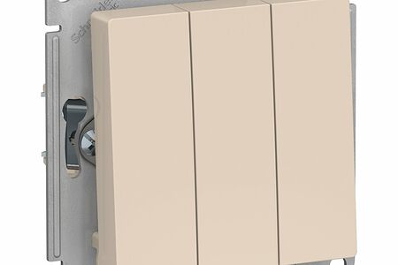 Выключатель трехклавишный Systeme Electric AtlasDesign 10АХ, бежевый ATN000231