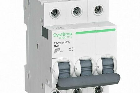 Автоматический выключатель серии City9 Set Systeme Electric, 3-полюсный, характеристика B, Icn = 4.5 кА. Применяется в электрических сетях напряжением 400 В. Предназначен для защиты от перегрузок и токов короткого замыкания. Оснащен механизмом «мгновенной коммутации». Ударопрочный корпус из специального пластика с 6 металлическими заклепками. Безопасные клеммы исключают попадание кабелей в заклеммное пространство.