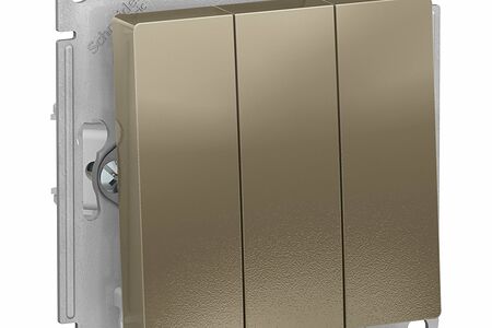 Выключатель трехклавишный Systeme Electric AtlasDesign 10АХ, шампань ATN000531