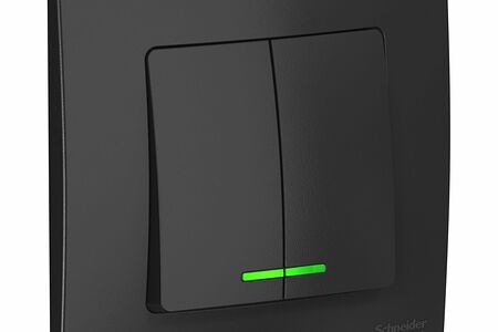 Двухклавишный выключатель скрытой установки с подсветкой 10А 250В Blanca Systeme Electric BLNVS010516, Антрацит