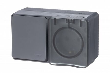 Блок: розетка со шторками 16А 250B, выключатель 1-клавишный 10А Systeme Electric AtlasDesign Profi54, антрацит ATN544070