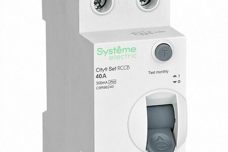 Выключатель дифференциального тока (ВДТ) или устройство защитного отключения (УЗО) серии City9 Set Systeme Electric, 2-полюсный, номинальный ток 40А, ток утечки 30 мА, тип АС, электромеханический. Применяется в электрических сетях напряжением 230В. Уставка по току утечки 30 мА обеспечивает гарантированную защиту людей при прямом и косвенном прикосновении. Кнопка тест обеспечивает проверку работоспособности аппарата. Крепление на DIN-рейку шириной 35 мм. Подключение сверху и снизу. Безопасные клеммы.