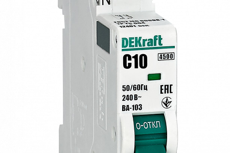 Автоматический выключатель серии ВА-103 DEKraft; 1+N; ном. ток 6 А; ном. раб. напряжение 240 В; кривая отключения C. Автоматические выключатели серии ВА-103 выдерживают ток КЗ до 4500 А. Автоматические выключатели соответствуют директиве RoHS;C, удобны и безопасны в эксплуатации; Автоматические выключатели служат для защиты электрических цепей от перегрузок и токов короткого замыкания