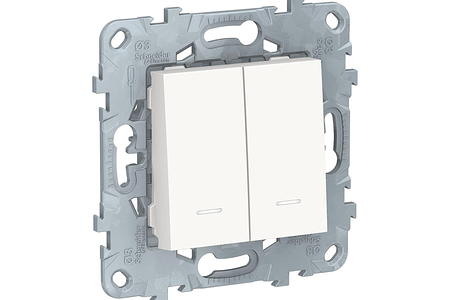 Переключатель 2-клавишный 2 модуля с подсветкой 2 х схема 6а Unica NEW Systeme Electric белый NU521318N