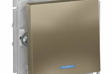 Выключатель одноклавишный с подсветкой Systeme Electric AtlasDesign 10АХ, шампань ATN000513