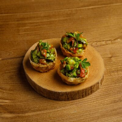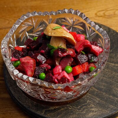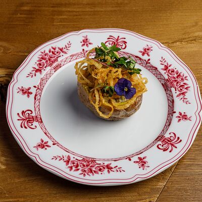 Картофель, запеченный с лесными грибами и соленым огурцом доставка