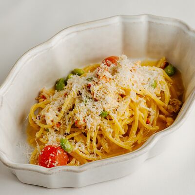 Блюдо с ярким и насыщенным вкусом. В его основе - отварная паста, которую затем обжаривают с луком-шалотом и чесноком. Основной вкус блюду придают вонголе - морские моллюски, которые обжариваются в белом вине и сливочном масле. В конце паста посыпается мелко рубленой петрушкой, что придает ей свежесть и яркий аромат. Это блюдо идеально подходит для любителей морепродуктов и пасты, сочетая в себе нежность сливок и насыщенность морепродуктов. Пасту отвариваем в подсоленной воде. На раскаленной сковороде обжариваем лук-шалот и чеснок с добавлением растительного масла. Добавляем вонголе, белое вино, выпариваем. Добавляем сливочное масло, отварную пасту, мелкорубленую петрушку