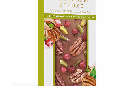 Шоколад Априори Deluxe молочный с фисташкой, пеканом и брусникой доставка