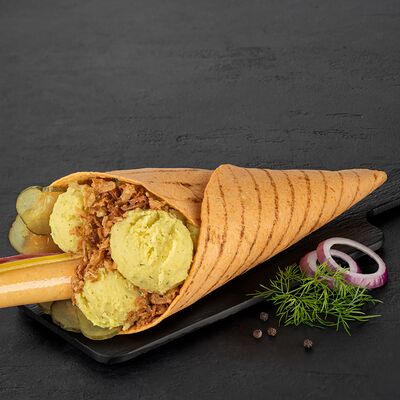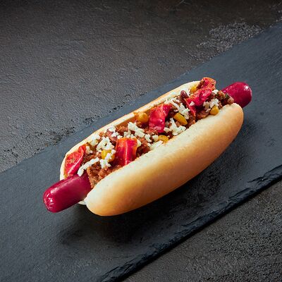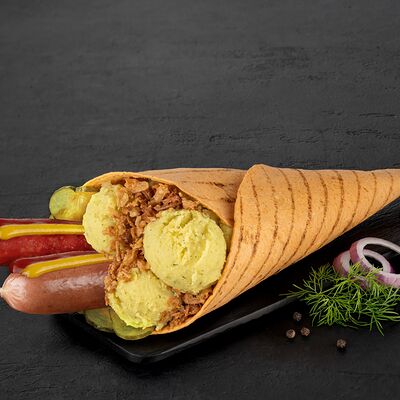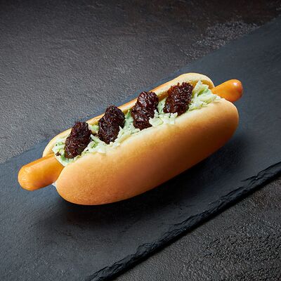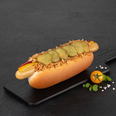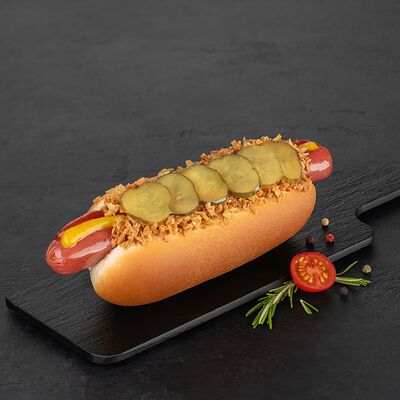 Хрустящий французский багет с любимыми соусами и поджаренной на гриле cвинoй сосиской кнакерс по оригинальной рецептуре Северной Германии