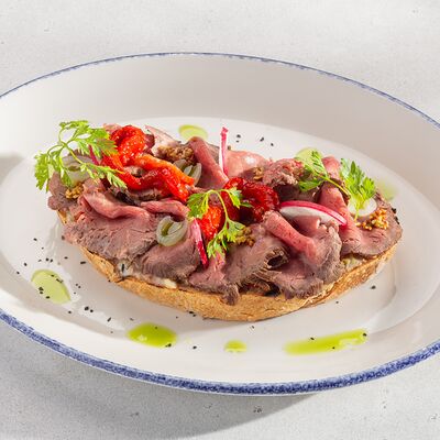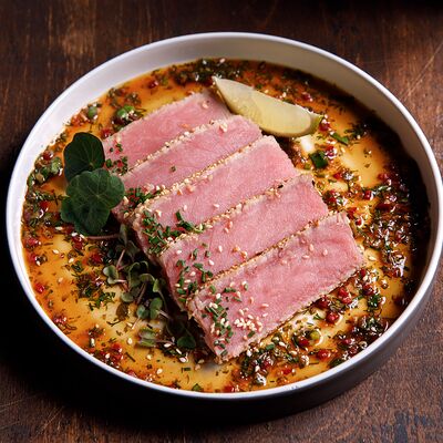 Опалённый тунец, кунжут, смесь азиатских соусов