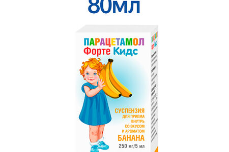 Парацетамол форте кидс суспензия 250 мг / 5 мл 80 мл со вкусом банана доставка