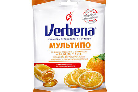 Карамель Verbena Мультипо 60 г с апельсиновой начинкой с мультивитаминами доставка