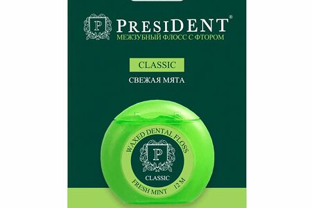 Флосс President Classic 12 м межзубный с фтором вощеный свежая мята доставка