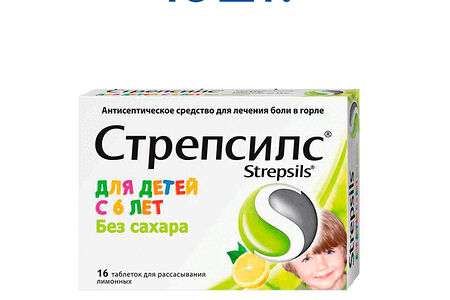Стрепсилс 16 шт таблетки для рассасывания со вкусом лимона для детей доставка
