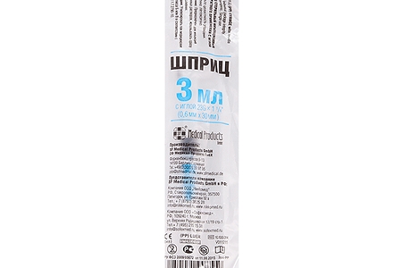 Шприц SF 3-х компонентный (3мл с надет.иглой 23G 1 1/4 (0,6ммх30мм) доставка