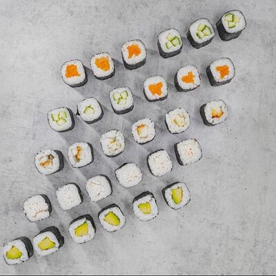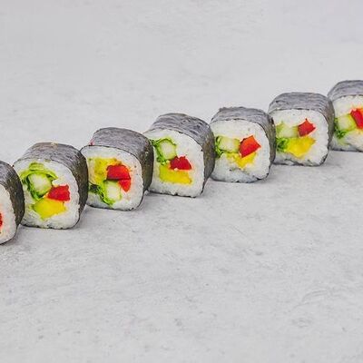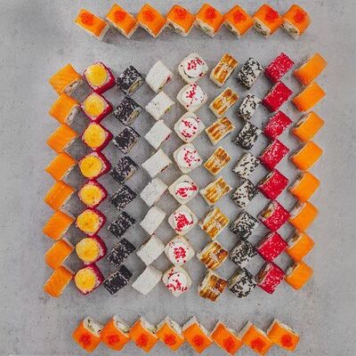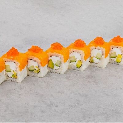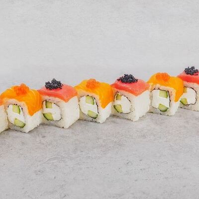 Рис, водоросли нори, Сыр мягкий, огурец, авокадо, угорь, лосось