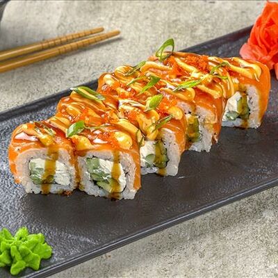 Рис, нори, огурец, сыр, лосось (8 шт.)