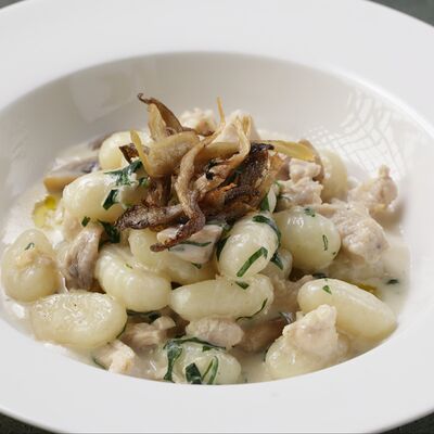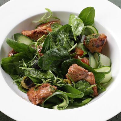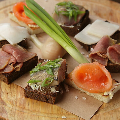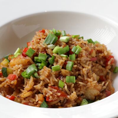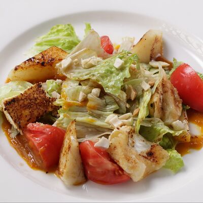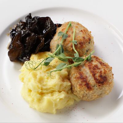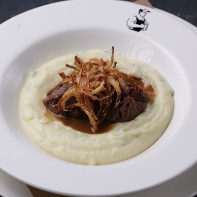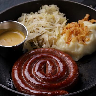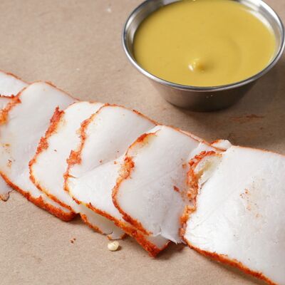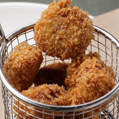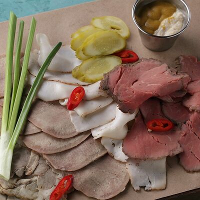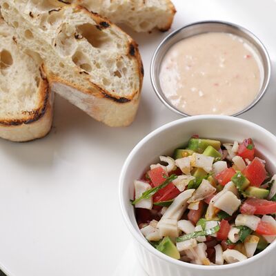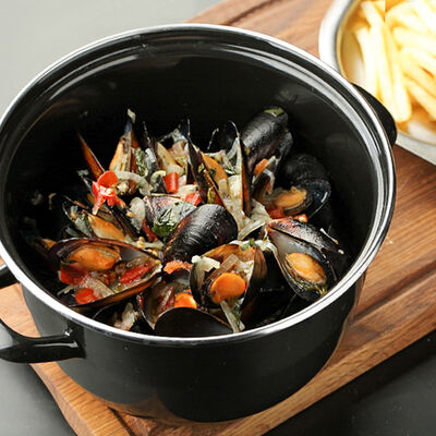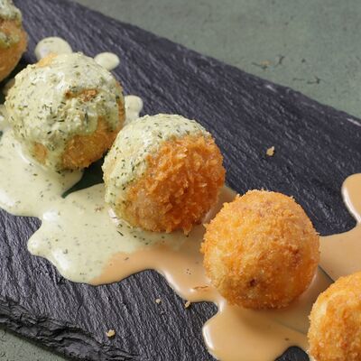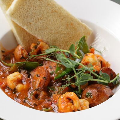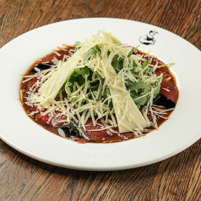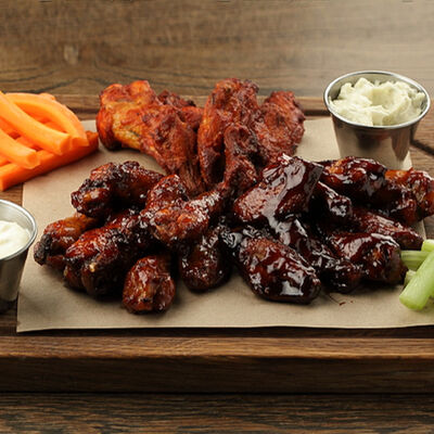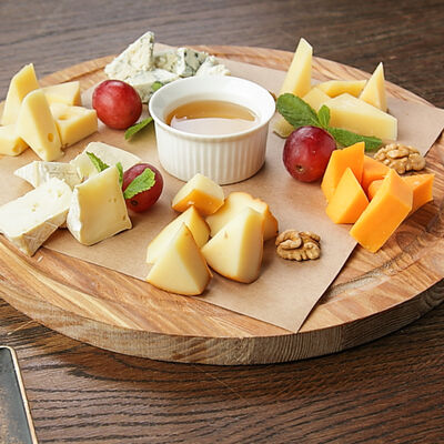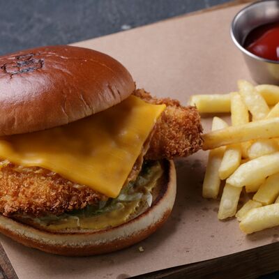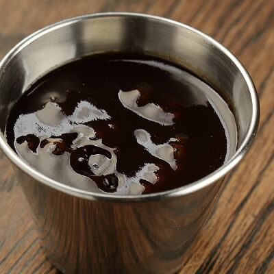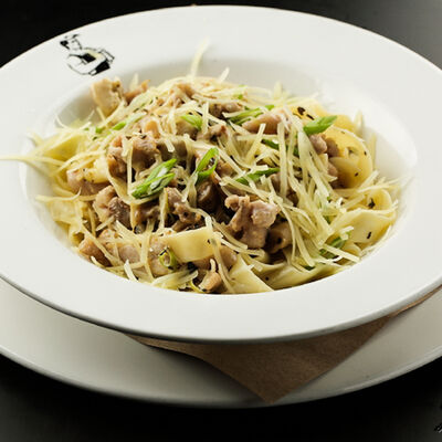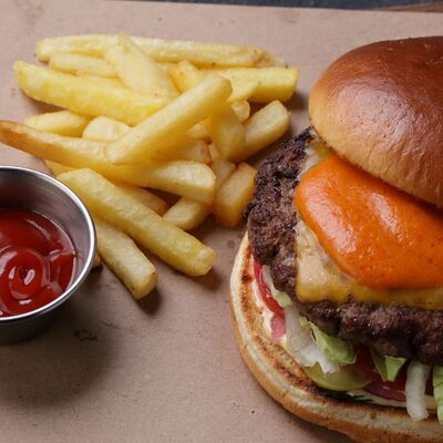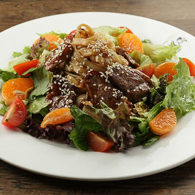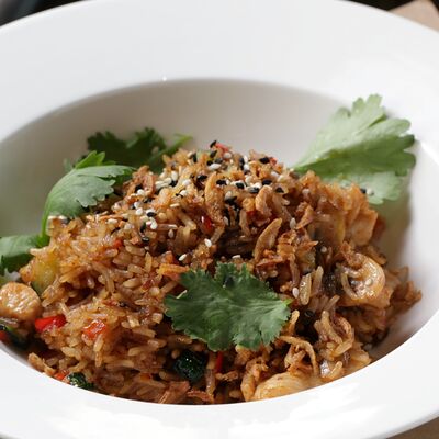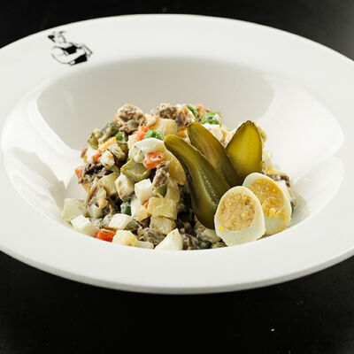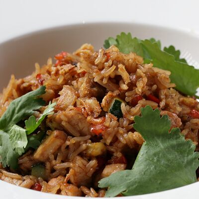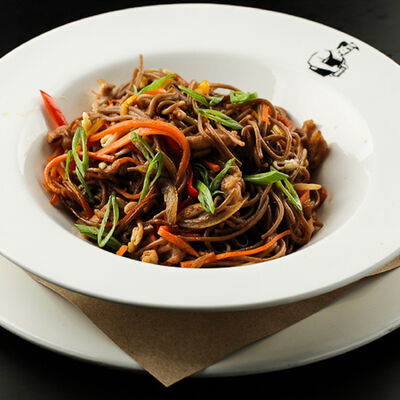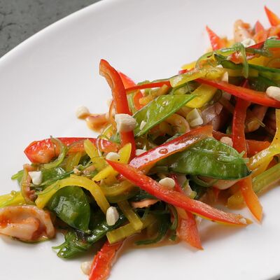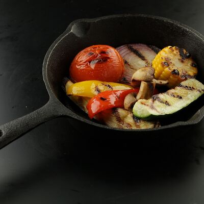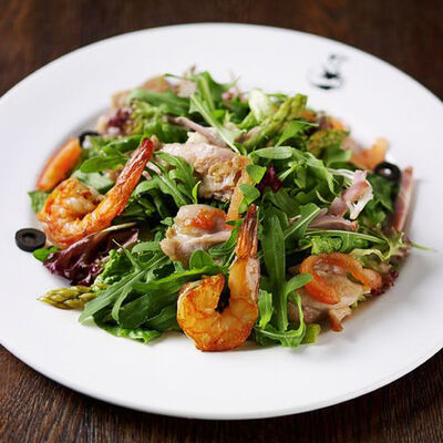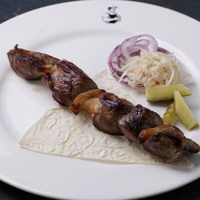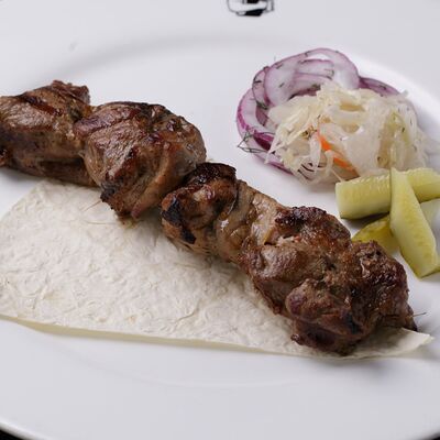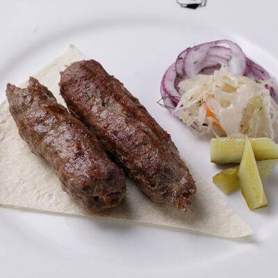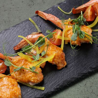 Куриное филе, шампиньоны, соус сальса и соус из печеных перцев, сыр гауда. Подается со сметаной