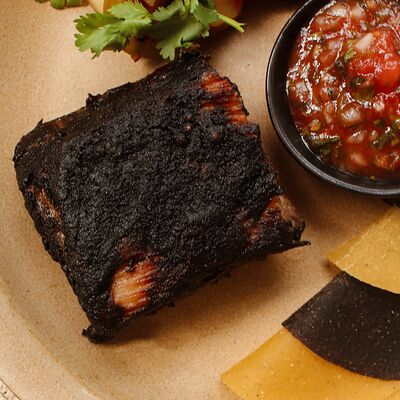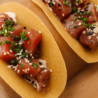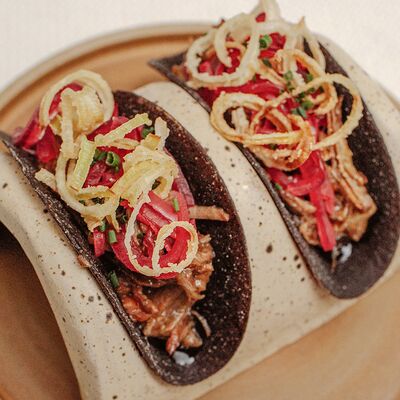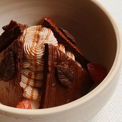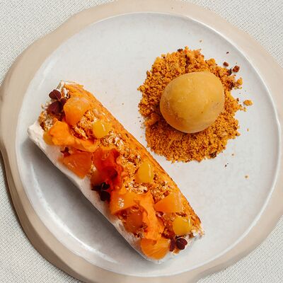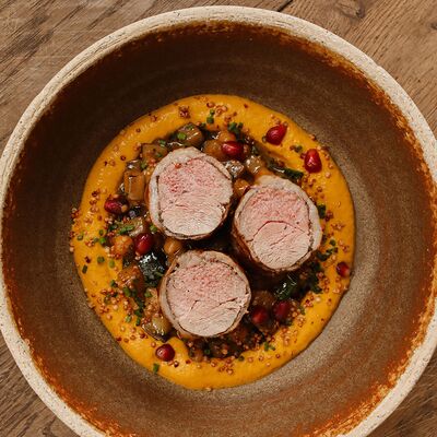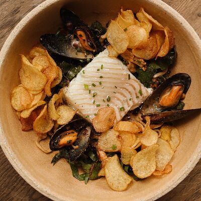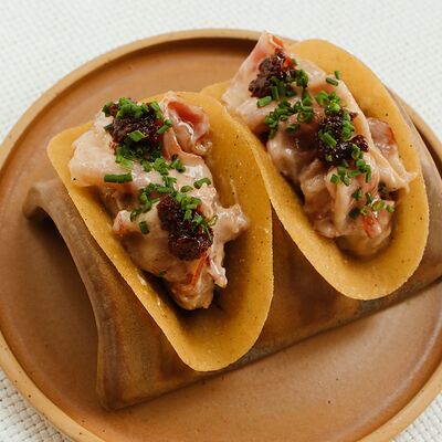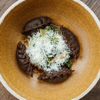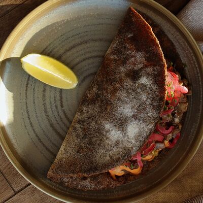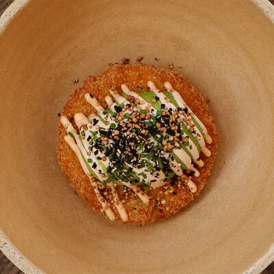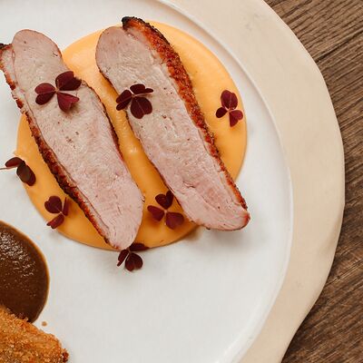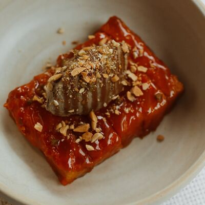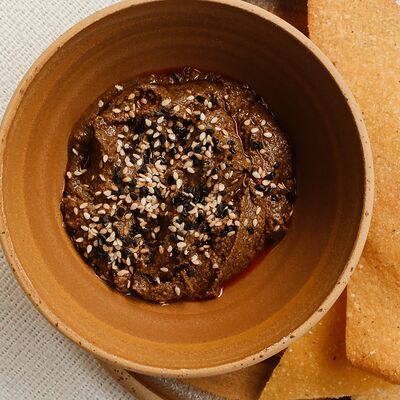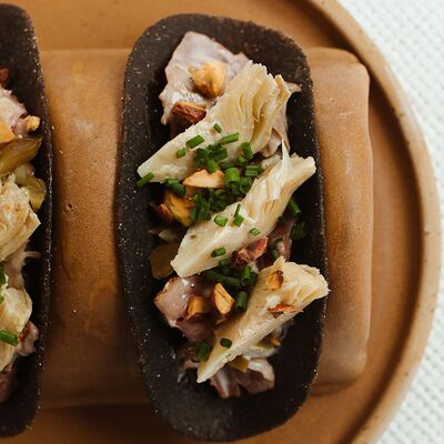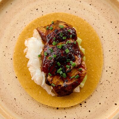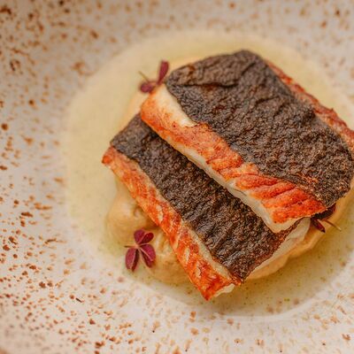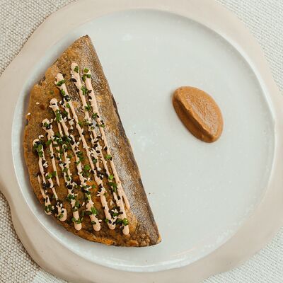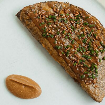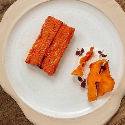 Командорский кальмар готовится в хоспере, подается с кремом из брокколи, нута и кунжута