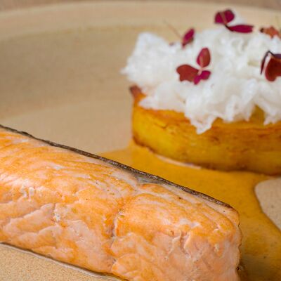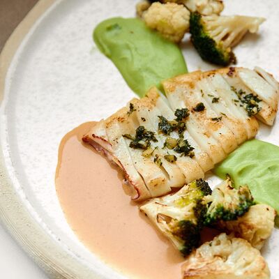 Кальмар с цветной капустой и кремом из брокколи доставка