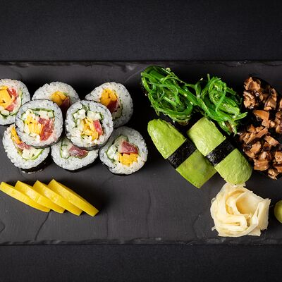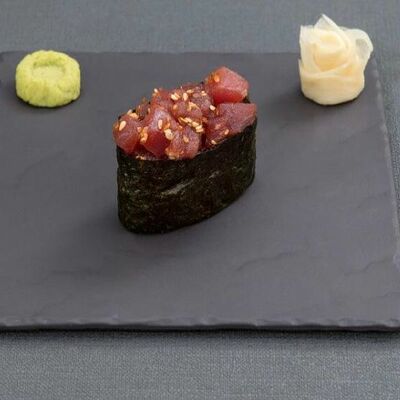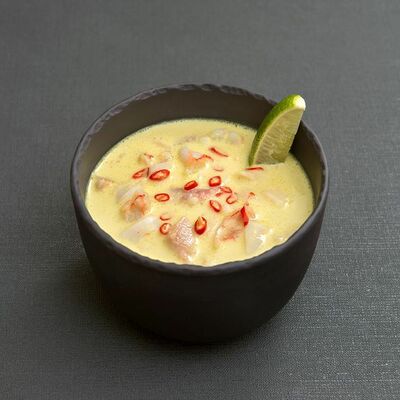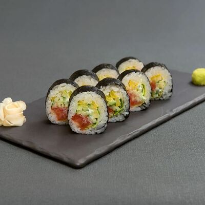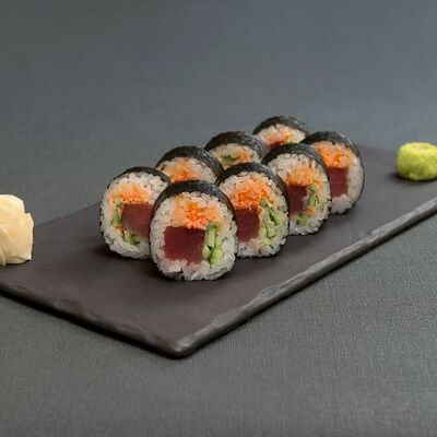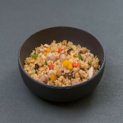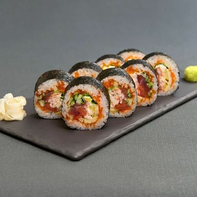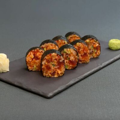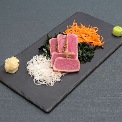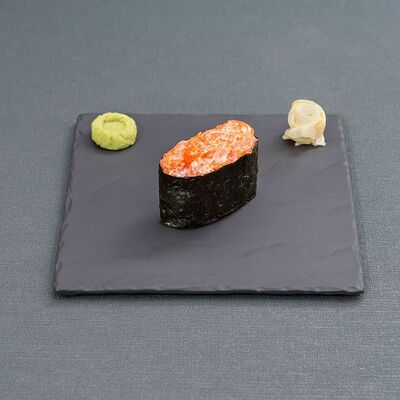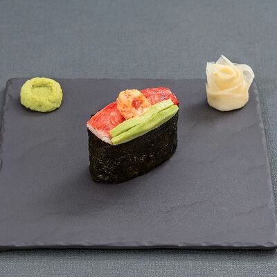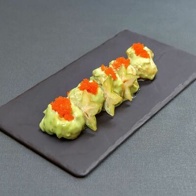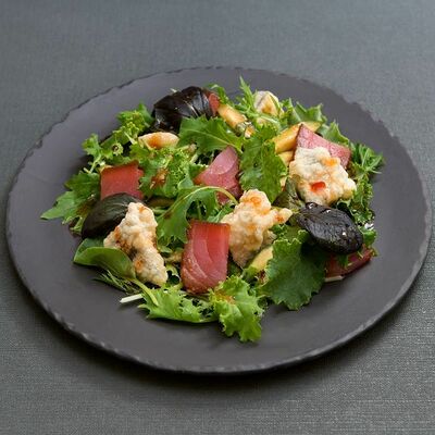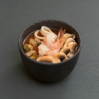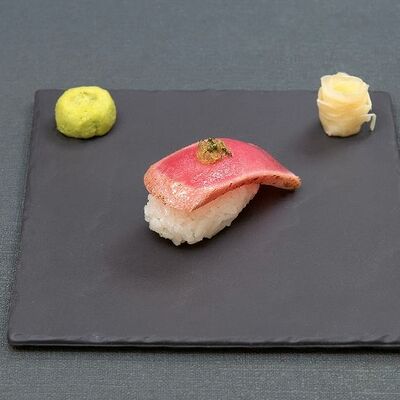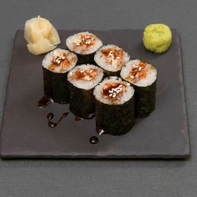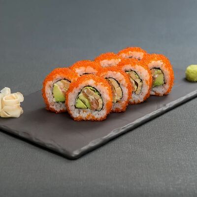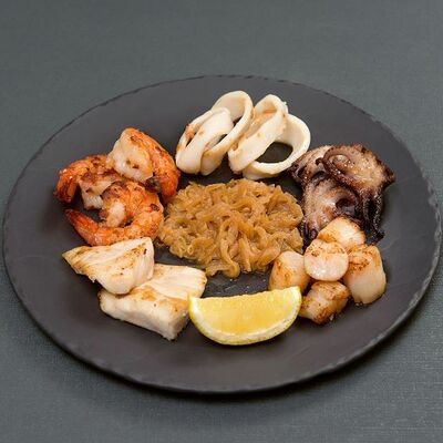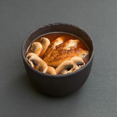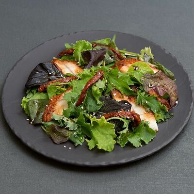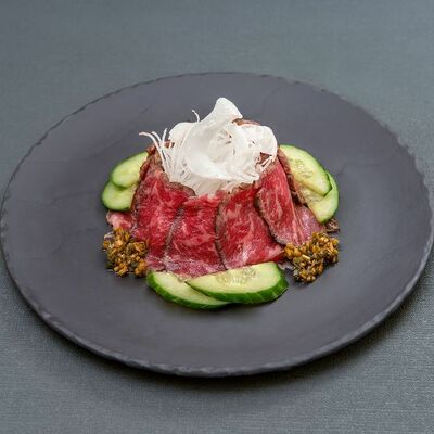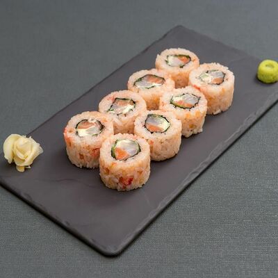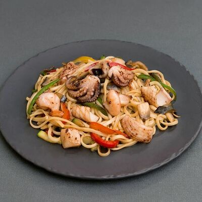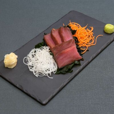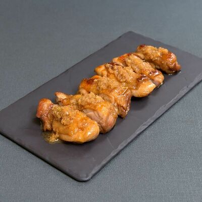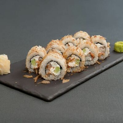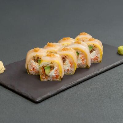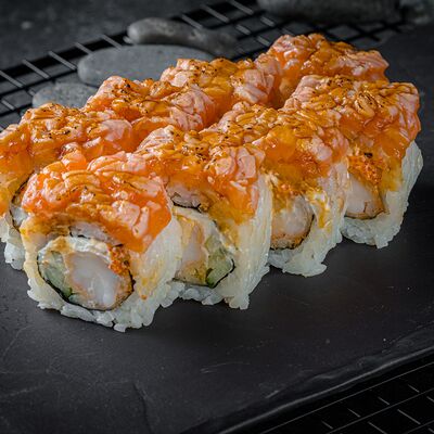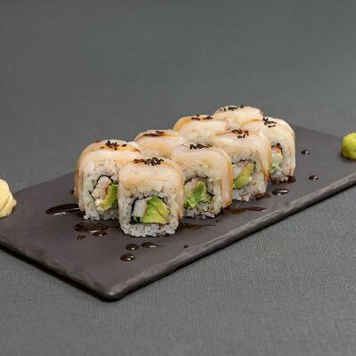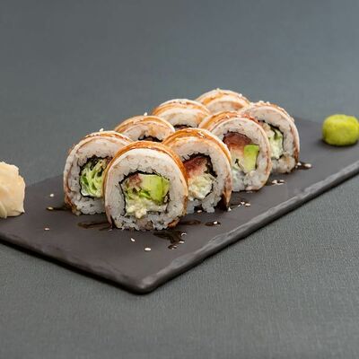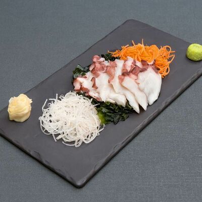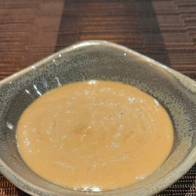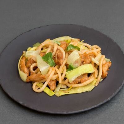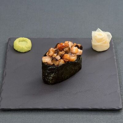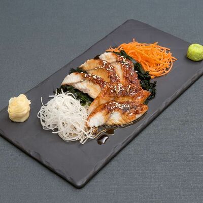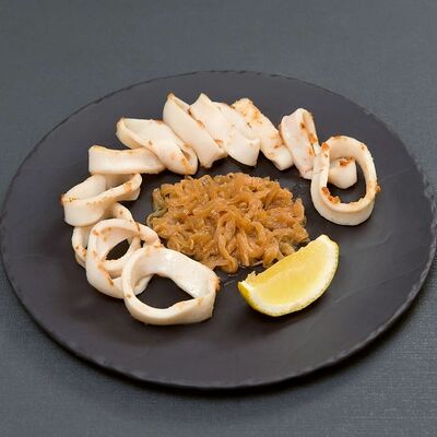 Заправляется луковым соусом: лук, соевый соус, саке, сливочное масло, лимон
