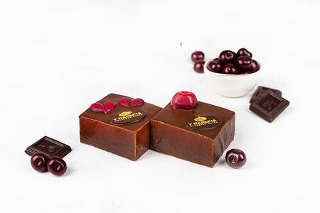 Нежный шедевр от Палыча с изысканным сочетанием вкусов идеального суфле со свежими яичными белками и настоящим сгущенным молоком собственного производства без заменителей молочных жиров. Дуэт вишневого суфле с натуральной вишней и шоколадного суфле с благородным ароматом эквадорского какао в сочетании с уникальным ореховым шоколадом без заменителей какао-продуктов.