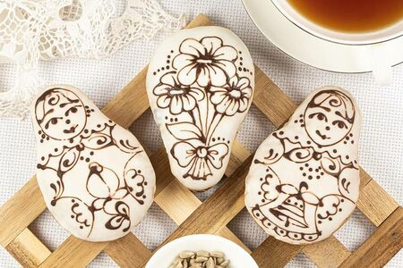 Каждая матрешка солнечных пряников расписывается белой и шоколадной глазурью вручную нашими мастерами. Декор в виде русской матрешки, цветов и самовара удивит всех гостей на празднике и станет запоминающимся подарком коллегам, второй половинке, гостям на празднике и украсит семейное чаепитие дома. Порадуйте себя и близких вкусными Солнечными пряниками от ТМ У Палыча.