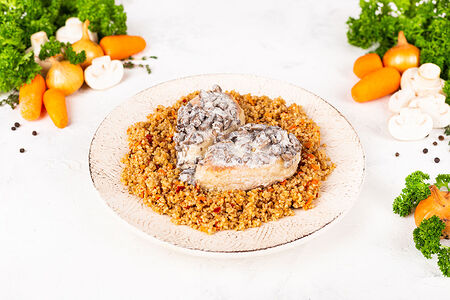 Котлетки куриные с полбой и грибным соусом 300 г доставка