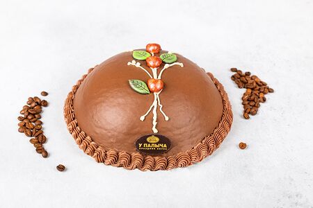 Великолепное сочетание двух видов мусса на мягком творожном сыре и взбитых сливках: кофейный мусс с добавлением натурального молотого кофе и мусс Тирамису (сливки, кофе). Нежное сдобно-песочное тесто пропитано сахарным сиропом с добавлением кофе и ликера. Торт в виде полусферы, покрыт тончайшим слоем шоколадно-ореховой пасты и украшен росыпью цветов из сливочного крема и капельками росы.