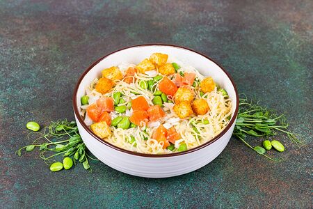 Знаменитое блюдо из свежих салатных листьев с аппетитными кусочками вкуснейшей слабосоленой форели, ароматным сыром Пармезан, спелыми томатами, хрустящими пшеничными гренками и фирменной заправкой Цезарь с добавлением легендарного соуса Вотчестер, придающего салату оригинальность и особый шарм. Большая сочная порция для истинного наслаждения!