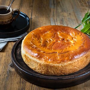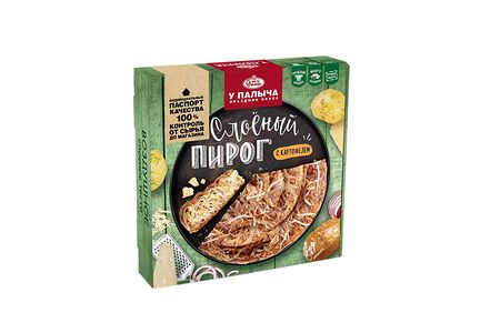 Традиционный греческий пирог из слоеного теста в форме большой улитки. Воздушное слоеное тесто из 256 слоев обладает особенно тонким вкусом и прекрасно сочетается с начинкой из рассыпчатой картошечки с жареным лучком и настоящим сыром. Сверху пирог посыпан ароматным Пармезаном. Благодаря оригинальной форме начинка равномерно распределана по пирогу. Слоеный пирог от Палыча - крафтовый пирог, изготовленный вручную, без улучшителей и заменителей.