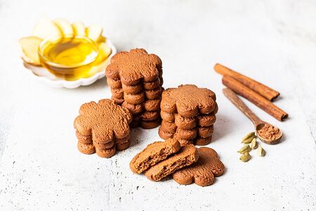 Ароматное песочное печенье с натуральным цветочным медом, эквадорским какао и букетом чарующих пряностей, изготовленным из кардамона, гвоздики и корицы, с пикантным шлейфом настоящего кайенского перца.