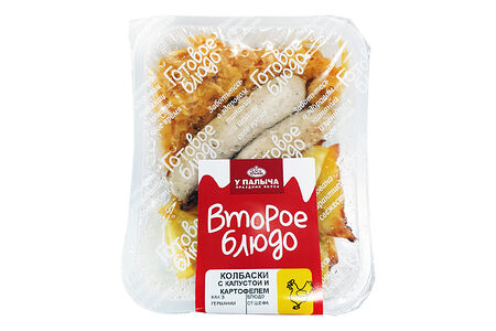 Колбаски куриные на гриле с тушеной капустой и картофелем 300 г доставка