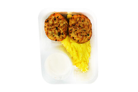 Биточки из индейки и рикотты с картофельным пюре и сливочно-горчичным соусом 300 г доставка