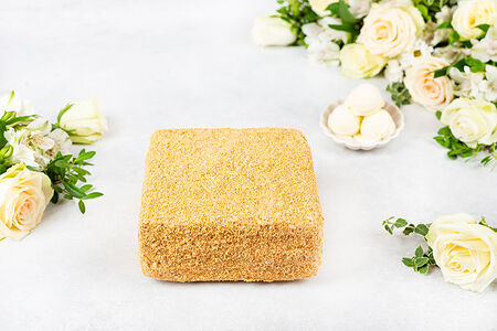 Изобилие тончайших слоеных коржей, прослоенных сливочно-заварным кремом с добавлением настоящего сливочного мороженого. Торт обсыпан крошкой из слоеных коржей.
