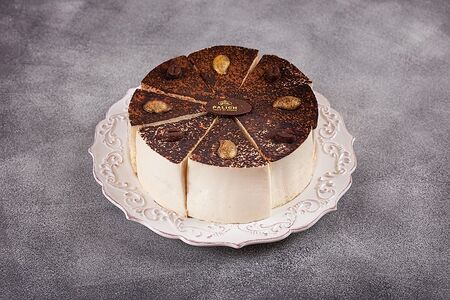 Нежнейшее сливочное суфле Тирамису и рассыпчатые песочные коржи с отборным сливочным маслом. Этот шедевр ручной работы украшен редким сортом какао и темным шоколадом.