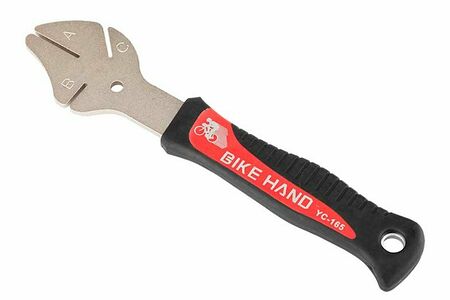 При помощи ключа YC-165 Bike Hand, Вы легко сможете выпрямить погнутый тормозной диск не снимая его со втулки. Удобная прорезиненная ручка. Ключ выполнен из прочной стали.