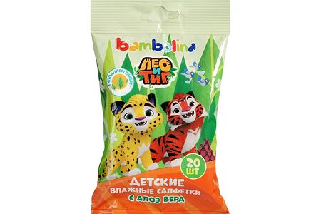Детские влажные салфетки Bambolina Лео и Тиг с алоэ вера 20шт доставка