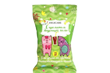 Детские влажные салфетки Delicare "коты" антибактериальные 15шт доставка