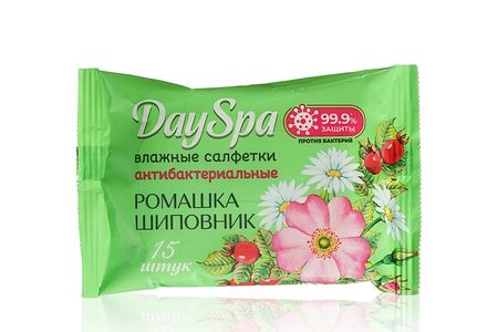 Антибактериальные влажные салфетки Day Spa " ромашка и шиповник " 15шт доставка