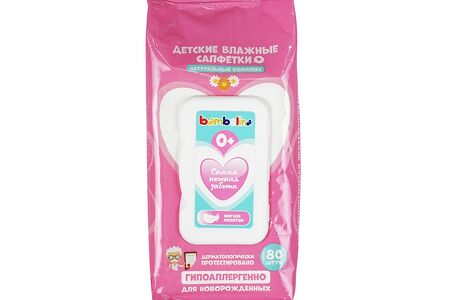 Детские влажные салфетки Bambolina " Самая нежная забота " , розовые , 0+ , 80шт доставка