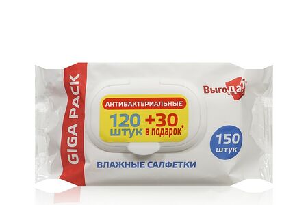 Влажные антибактериальные салфетки Выгода ( 120+30шт в подарок ) 150шт доставка