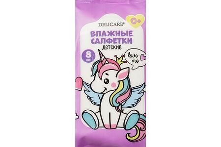 Детские влажные салфетки Delicare " Единорог " 0+ 8шт доставка